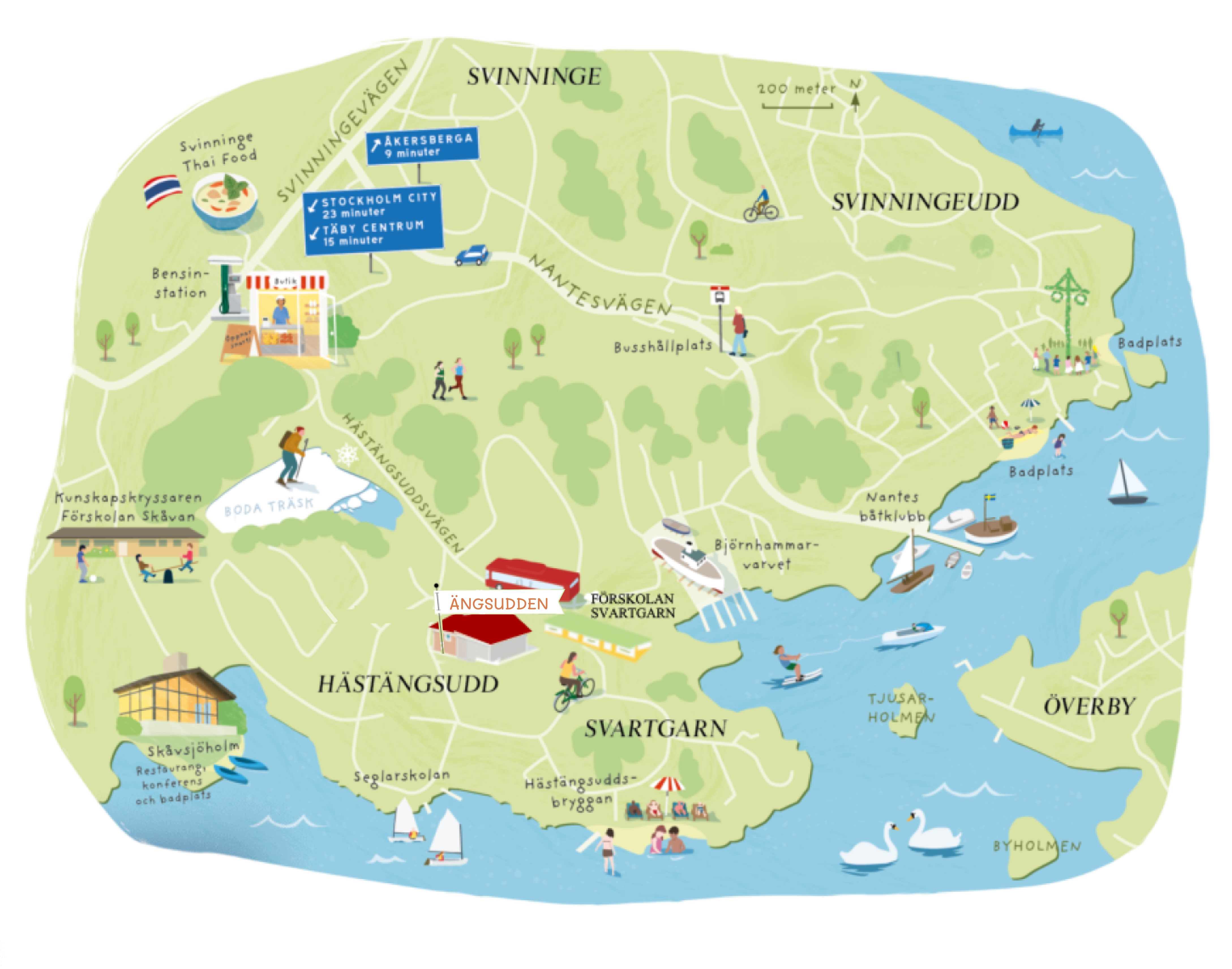 Hästängsudd är ett idylliskt område där du får det bästa av två världar – hav och natur i direkt närhet, kombinerat med goda kommunikationer och service. Här bor du i en barnvänlig och engagerad miljö, med närhet till förskolor, skolor, sportanläggningar och ett aktivt föreningsliv.